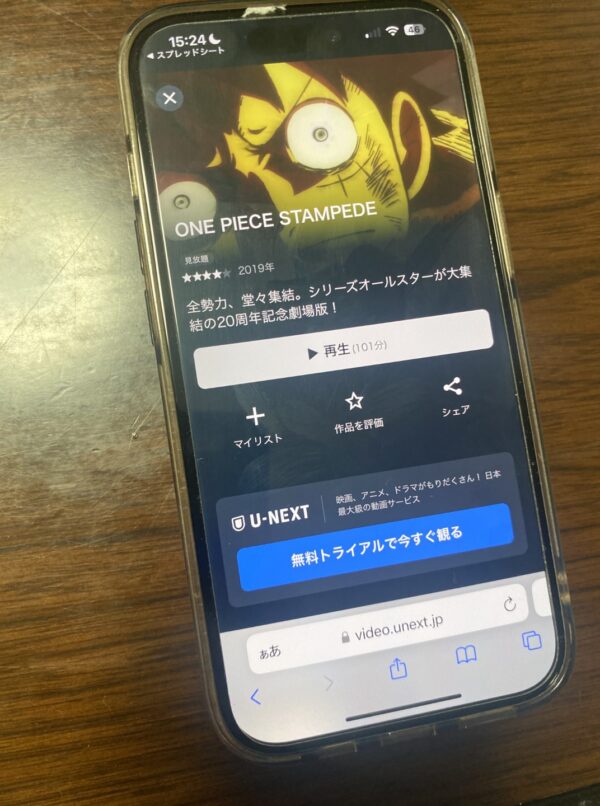 スマホではなく、テレビや大きい画面で「ONE PIECE STAMPEDE」の映画をフルで視聴したい場合はおすすめです。