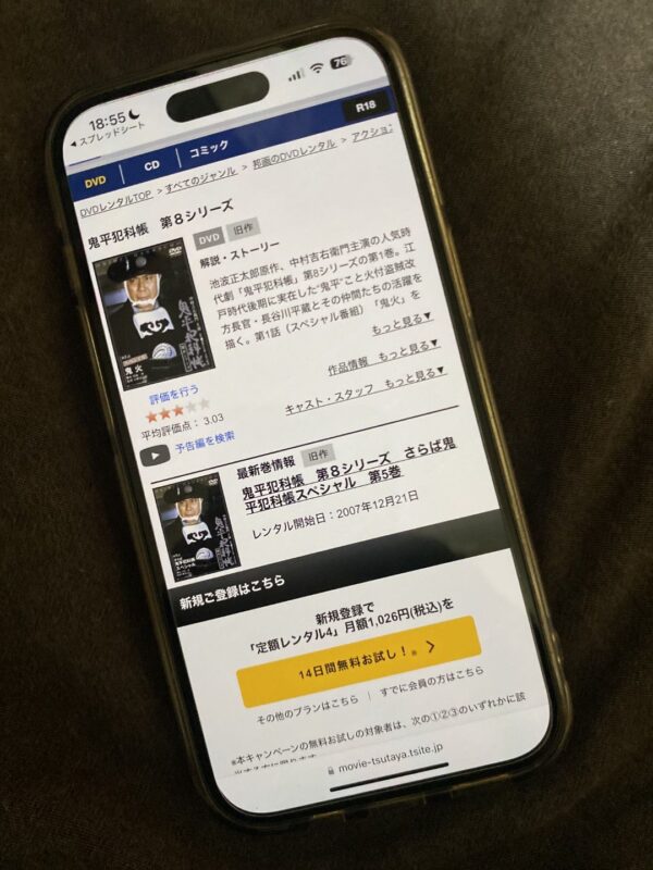 ただ、すぐにドラマ「鬼平犯科帳 第8シリーズ」を全話無料視聴したい場合は、TSUTAYA DISCASですぐに視聴ができますので、こちらもチェックしてみてくださいね。