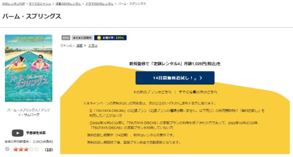 そして、映画「パーム・スプリングス」はツタヤディスカスで配信しているので、無料でDVDレンタルが可能です。