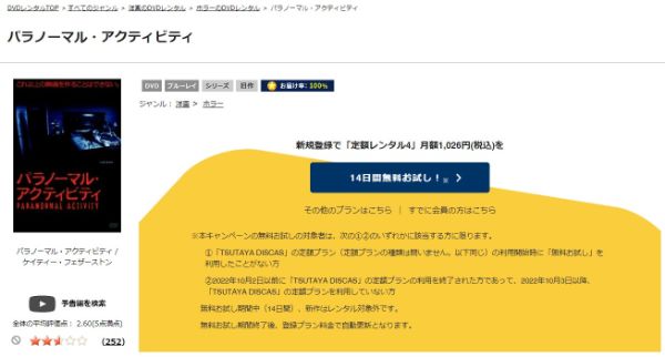 そして、映画「パラノーマル・アクティビティ」はツタヤディスカスで配信しているので、無料でDVDレンタルが可能です。