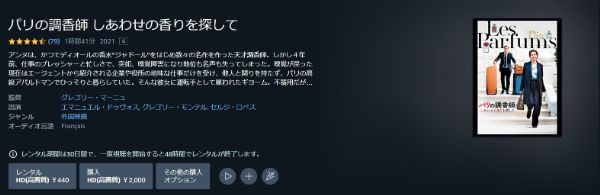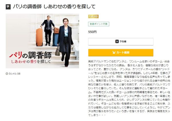 映画「パリの調香師 しあわせの香りを探して」は550円でレンタル配信してるので、フルで視聴できます。