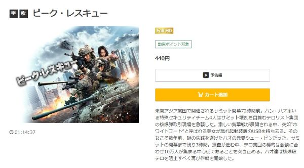 music.jpは、初回登録で1,600Ptが貰えるので「ピーク・レスキュー」の映画を無料で見ることができます。