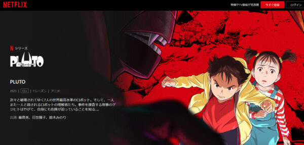 人気の動画配信サービスのNetflixでアニメ「PLUTO」が配信されているか調査しました。