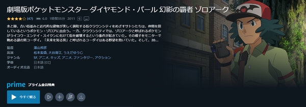 Amazonプライムビデオで映画「劇場版ポケットモンスター ダイヤモンド&パール 幻影の覇者 ゾロアーク」をフルで無料視聴