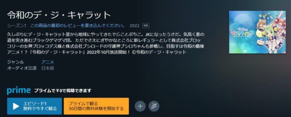 また、Amazonプライムではアニメ「令和のデ・ジ・キャラット」の関連動画やシリーズ作品も視聴することができます。
