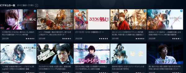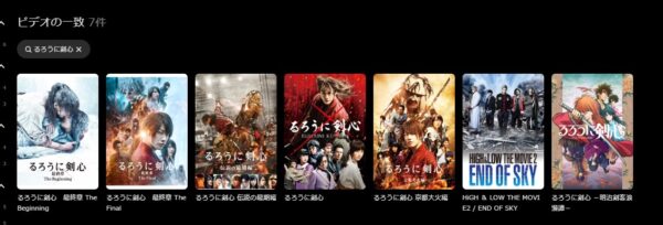 また、「るろうに剣心」の映画もフルで有料レンタルにて配信中です。