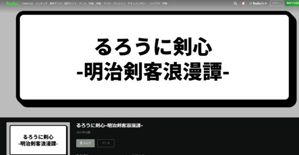 Huluでアニメ「るろうに剣心」のシリーズの動画を全話無料視聴