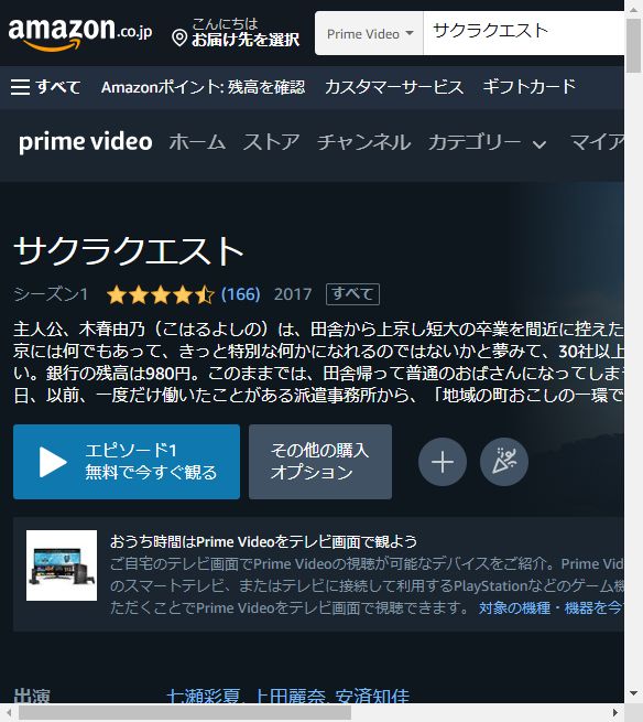 人気の動画配信サイトAmazonプライムでも、アニメ「サクラクエスト」を視聴できるか調査しました。