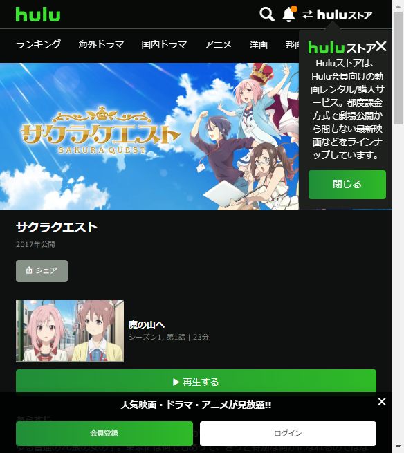 Huluでアニメ「サクラクエスト」の動画を全話視聴