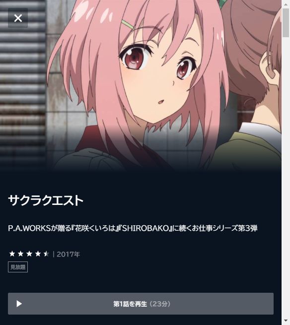 今後、Netflixでアニメ「サクラクエスト」の配信を待つより、U-NEXTでアニメ「サクラクエスト」は全話配信されているので、お試し期間のあるU-NEXTを利用することをおすすめします。