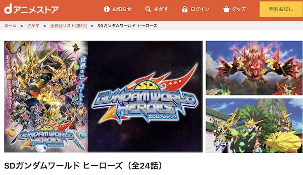 dアニメストアでアニメ「SDガンダムワールドヒーローズ」の動画を全話無料視聴