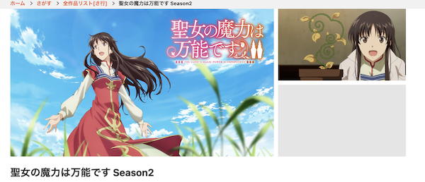またdアニメストアは、アニメ「聖女の魔力は万能です Season2(2期)」のシリーズや関連動画を全話視聴できます。