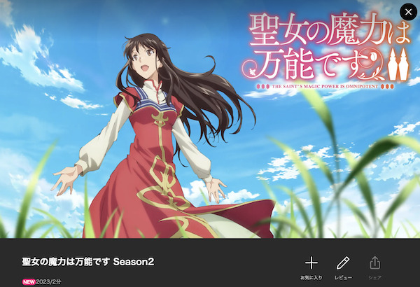 31日間もお試し期間があるので、「聖女の魔力は万能です Season2(2期)」の動画やシリーズ作品も思いっきり楽しめますよ。