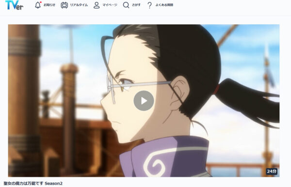 そこで、アニメ「聖女の魔力は万能です Season2(2期)」がTverで見逃し配信をしてるか調査しました。
