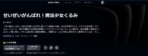 アニメ「せいぜいがんばれ!魔法少女くるみ(1期)」はAmazonプライムで全話視聴できます。