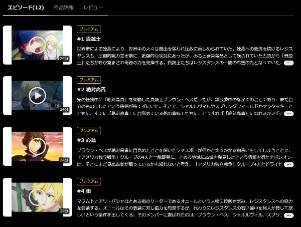 U-NEXTなら、アニメ「千銃士」の動画を1話から全12話まで全話視聴できます。