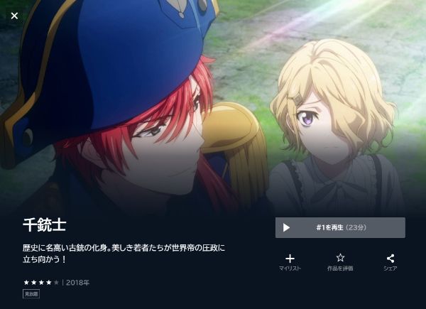 Netflixでは、アニメ「千銃士」は配信されていませんでした。