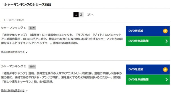 TSUTAYA DISCASは、準新作・話題作・旧作が8枚までお試し期間中に無料レンタルができ「シャーマンキング(2001)」のアニメは、旧作なので無料視聴可能です。