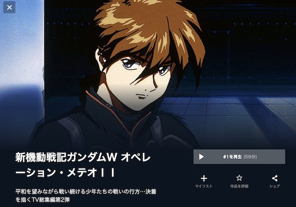 今後、Netflixでアニメ「新機動戦記ガンダムW オペレーション・メテオ Ⅱ」の配信を待つより、U-NEXTでアニメ「新機動戦記ガンダムW オペレーション・メテオ Ⅱ」は全話配信されているので、お試し期間のあるU-NEXTを利用することをおすすめします。