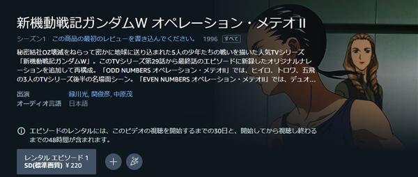 アニメ「新機動戦記ガンダムW オペレーション・メテオ Ⅱ」は1話視聴に220円かかります。