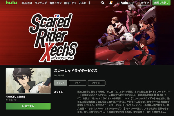 Huluでアニメ「スカーレッドライダーゼクス」の動画を全話視聴