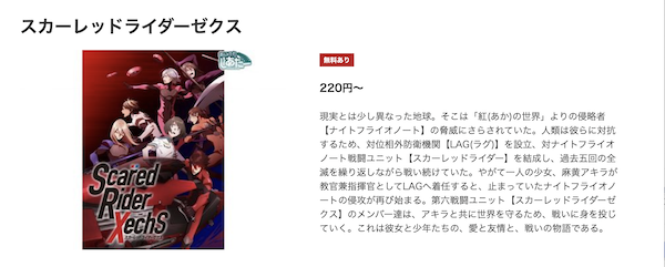 ただ、アニメ「スカーレッドライダーゼクス」の関連作品やシリーズ作品は配信しているので、有料となってしまいますが見放題で視聴は可能です。