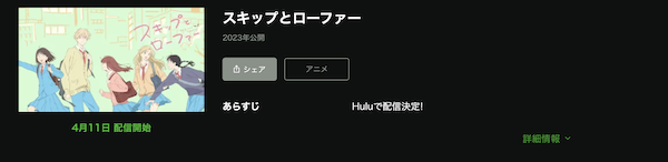 そして、アニメ「スキップとローファー」の関連作品もHuluで配信されており見放題で視聴できます。
