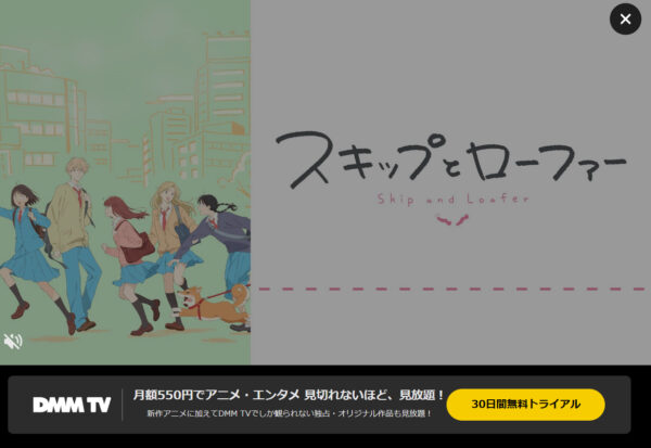 『DMMTV』は初回登録で、30日間のお試し期間があるのでアニメ「スキップとローファー」をお試しで全話視聴することができますよ。