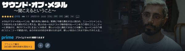 映画「サウンド・オブ・メタル」はAmazonプライムビデオでもフルで視聴することができます。