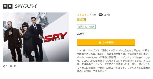 映画「SPY/スパイ」は299円でレンタル配信してるので、フルで視聴できます。