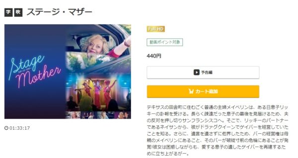 映画「ステージ・マザー」は440円でレンタル配信してるので、フルで視聴できます。