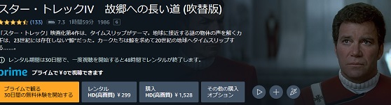 Amazonプライムビデオは、30日間のお試し無料期間があり「スター・トレックIV 故郷への長い道」の映画をフルで視聴することができます。