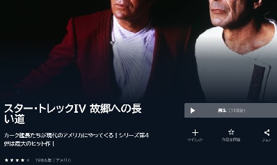 ただ、映画「スター・トレックIV 故郷への長い道」の関連作品の映画は配信しているので、見放題で視聴は可能です。