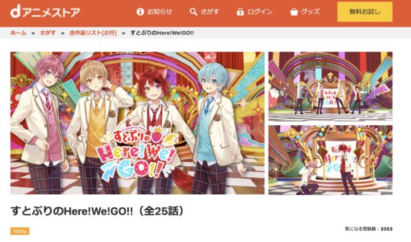 アニメ「すとぷりのHere! We! GO!!」が全話無料視聴できる動画配信サイトを調査しました。