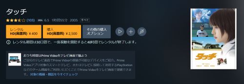 映画「タッチ」はAmazonプライムビデオでもフルで視聴することができます。