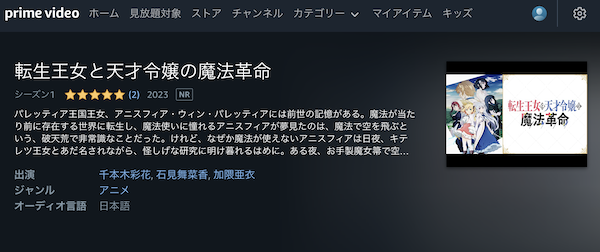人気の動画配信サイトAmazonプライムで、アニメ「転生王女と天才令嬢の魔法革命」を視聴できるか調査しました。