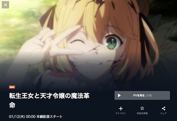 U-NEXTでアニメ「転生王女と天才令嬢の魔法革命」の動画を無料トライアルで全話視聴