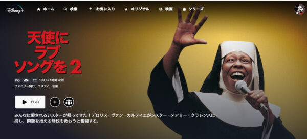 ただ、映画「天使にラブソングを2」の動画は視聴できないので、天使にラブソングを2を見たい場合はディズニープラスをお試しください。