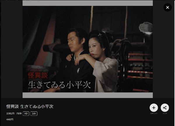 初回お試し期間が30日間あり、映画「怪異談 生きてゐる小平次」の動画も440円でフル視聴することができます。