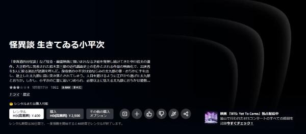しかし、映画「怪異談 生きてゐる小平次」はレンタル作品のため、300円かかってしまい無料視聴することができません。