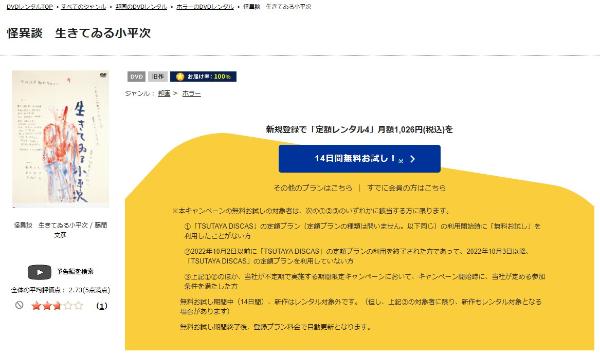 そして、映画「怪異談 生きてゐる小平次」はツタヤディスカスで配信しているので、無料でDVDレンタルが可能です。