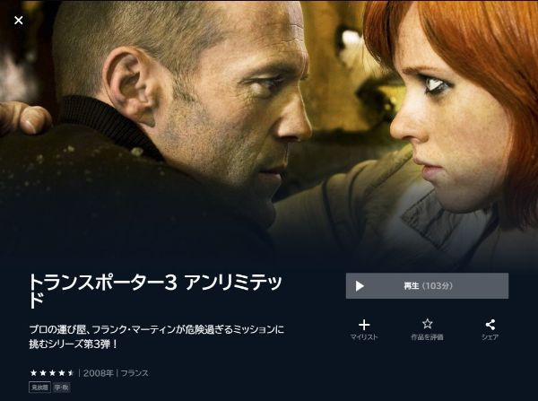 Netflixで映画「トランスポーター3 アンリミテッド」を配信しているか調査しました。