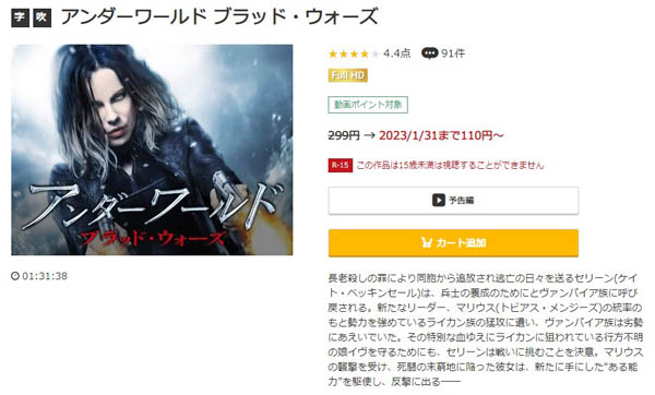 映画「アンダーワールド ブラッド・ウォーズ」は299円でレンタル配信してるので、フルで視聴できます。
