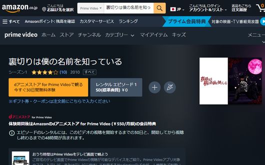 人気の動画配信サイトAmazonプライムでも、アニメ「裏切りは僕の名前を知っている」を視聴できるか調査しました。