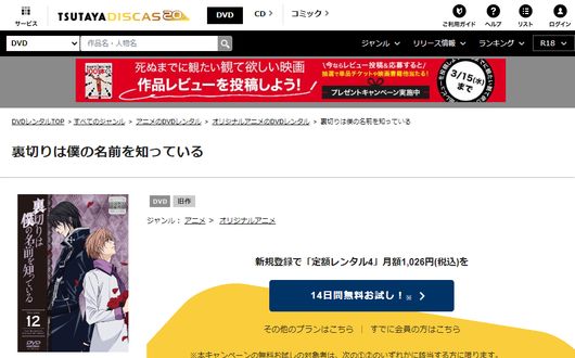 TSUTAYA DISCASでアニメ「裏切りは僕の名前を知っている」の動画を全話無料視聴