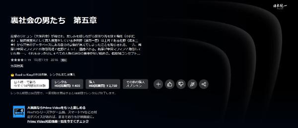 映画「裏社会の男たち 第五章」はAmazonプライムビデオでもフルで視聴することができます。