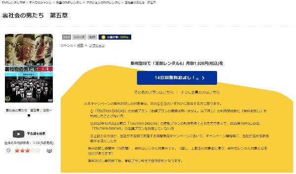 そして、映画「裏社会の男たち 第五章」はツタヤディスカスで配信しているので、無料でDVDレンタルが可能です。
