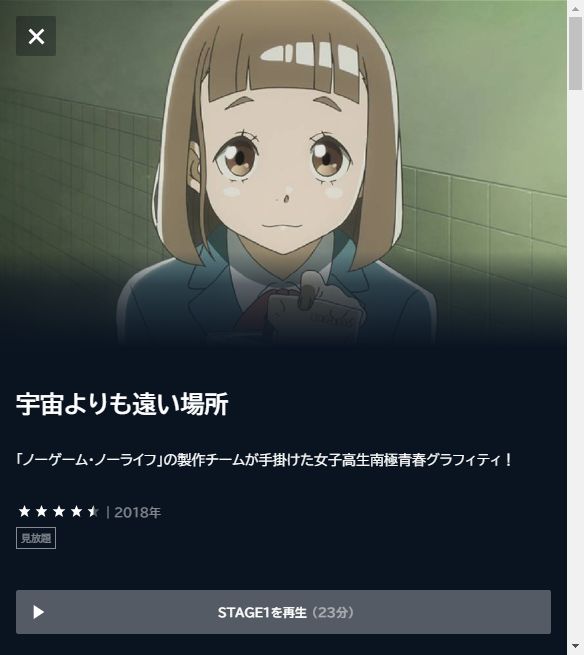 U-NEXTでアニメ「宇宙よりも遠い場所」の動画を無料トライアルで全話視聴