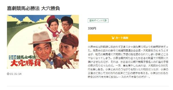 映画「喜劇競馬必勝法 大穴勝負」は330円でレンタル配信してるので、フルで視聴できます。