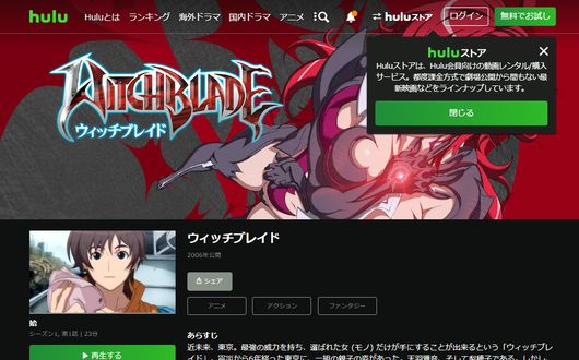 Huluでアニメ「ウィッチブレイド」の動画を全話視聴